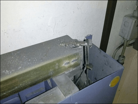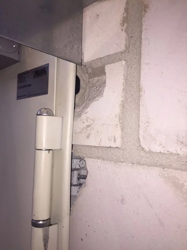 Warum die DGUV Prüfung, UVV Prüfungen, Wartung von Feststellanlagen, Brandschutztore, Feuerabschlüsse und Brandschutztüren so wichtig sind, zeigen hier die Bilder aus der Praxis, hier wurde falsch montiert und über Jahre falsch geprüft und durch die Instandhaltung noch manipuliert.