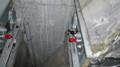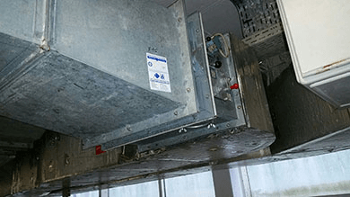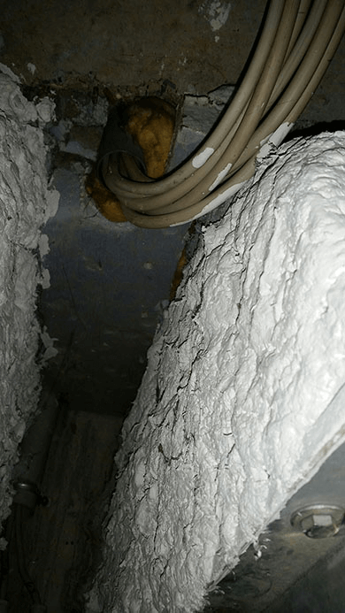 Prüfung von Brandschutzklappe mit Mangel, kein Brandschutz vorhanden.