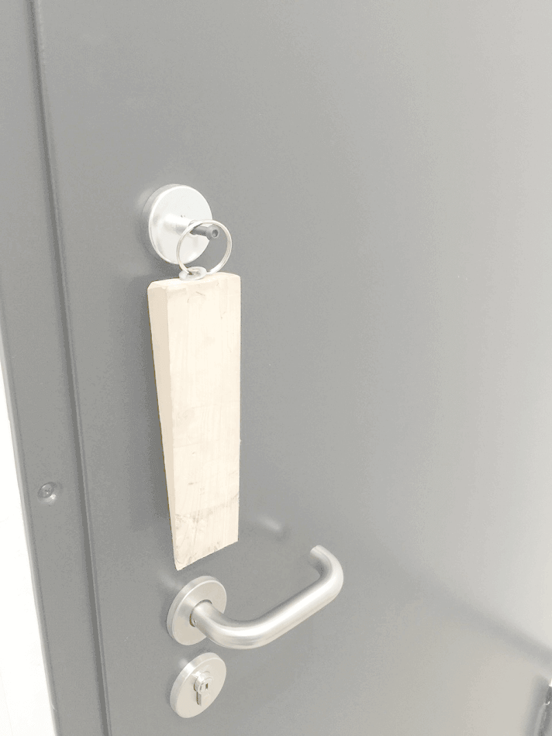 UVV Prüfung, Wartung Brandschutztüren, Rauschutztüren KFK® Team Ingolstadt, Nürnberg Der Holzkeil, ist grob fahrlässig und nicht zugelassen!