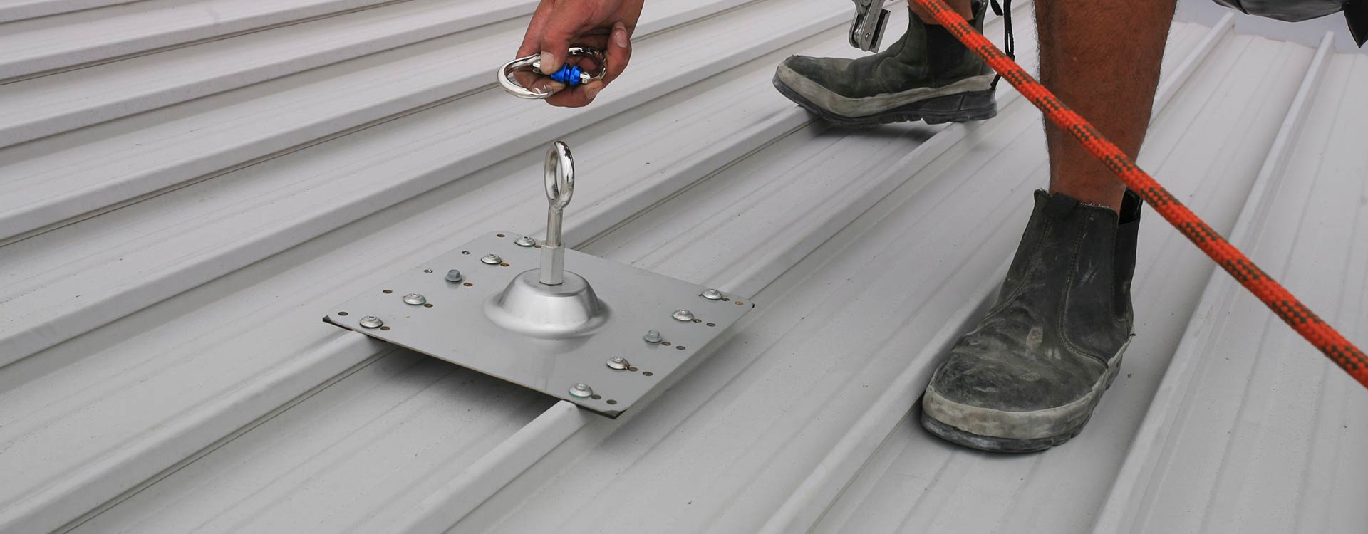 Einzelanschlagpunkten, Dachhaken, Sekuranten*, Anschlagpunkte, Seilsysteme, Schienensysteme, Rückhaltesysteme, Auffangsysteme, Flachdachsicherung, Sicherheitshaken, Geländer, Attika, Steigleitern von z.B.: